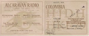 QSL + Adhesivo , Recibida de Marfil Estero de Colombia , en los 5910 Khz , 0002 UTC, en 56 Días, Verificador : Rafael Rodriguez, E-mail: rafaelcoldx@yahoo.com