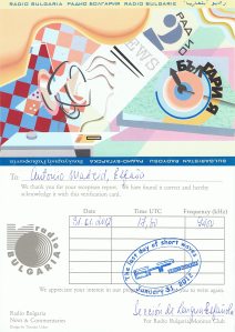 Recibida QSL de RADIO BULGARIA Ultima emision en Onda Corta el 31/01/12, 1730 UTC, 9400 Khz, llegó en 44 días, informe enviado a: spanish@bnr.bg
