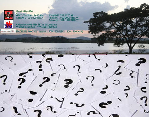 2. For the Americas and parts of Europe, Tuesday 0100-0200 UTC (New UTC) on WBCQ, 7490 KHz from Monticello, ME, USA (Monday 8-9PM EST in the US).