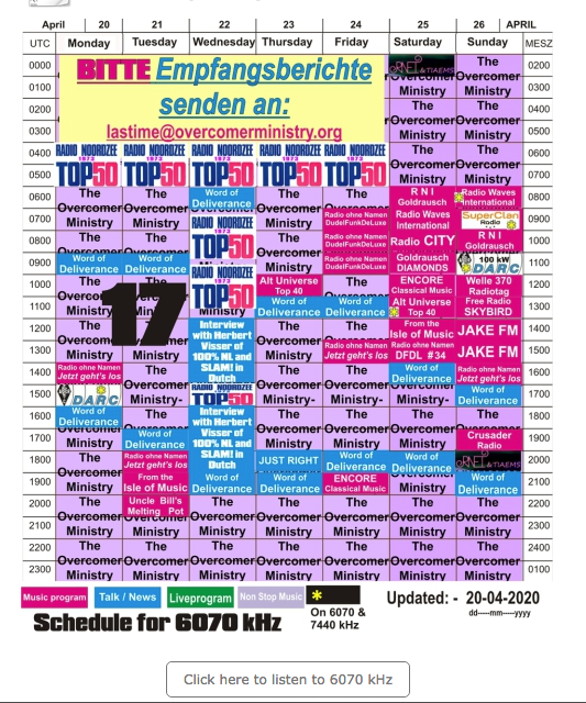 This Sunday coming 26th April 2020, DJ Frederick’s Free Radio Skybird will be broadcasting another show in its weekly spring run at 1100 UTC (1200 UK) on 6070 kHz via Channel 292.