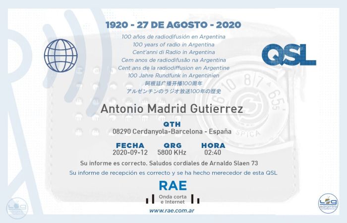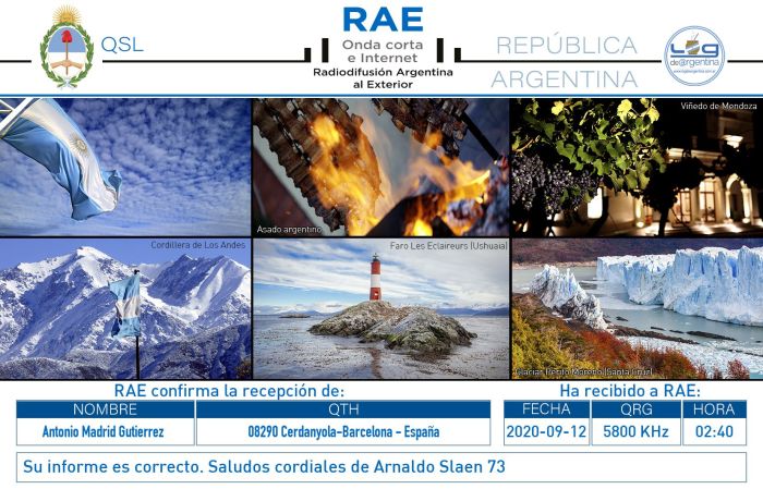 Recibidas E-QSL de Radio Argentina al Exterior (RAE)
