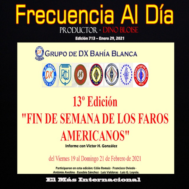 Informe con Víctor H. González. Participaron en esta edición: Célio Romais – Francisco Oviedo – Antônio Avelino – Eusebio Sánchez – Luís Valderas – Luís G. Loyola. -Síguenos en YouTube https://bit.ly/2CudHAV, Facebook https://bit.ly/1kpXeRP, Twitter https://bit.ly/2Z2tGUH, Tunein https://bit.ly/2XeNHWV & Programas DX http://bit.ly/1A0x4Xq ► Dino Bloise | Frecuencia Al Día 2021 © Todos los derechos reservados.[No. 713. Publicado Enero 29, 2021 – 04:00 UTC] #FrecuenciaAlDía #FindeSemanadelosFarosAmericanos