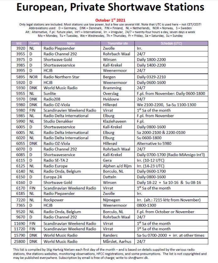 Actualizado Listado de Emisoras Privadas Europeas – Octubre 2021
