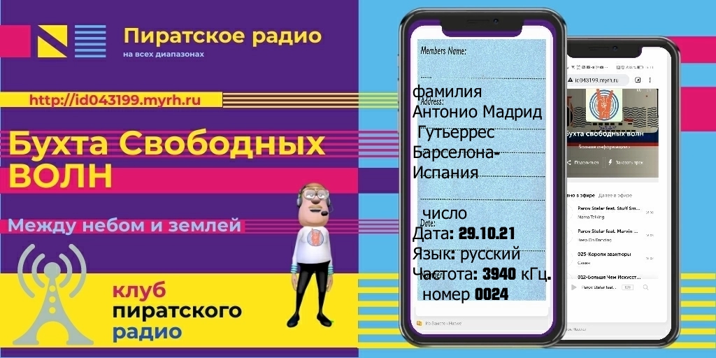Recibida E-QSL de la emisora Radio Free Waves Bay escuchada a las 2128 UTC en la frecuencia de 3940 KHz. en idioma Ruso, llegó en 1 día, informe enviado a: 6783432@gmail.com V/S:Vadim Komarov
