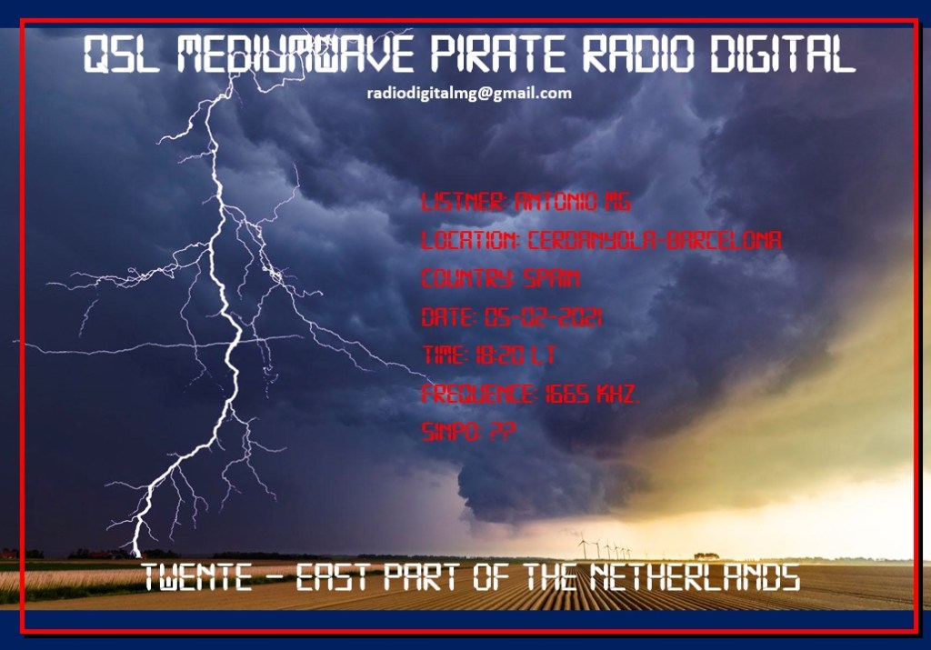 Recibida E-QSL de la emisora Holandesa Radio Digital escuchada a las 1816 UTC en la frecuencia de 1665 KHz. en idioma Ingles, llegó en 348 días, informe enviado a: radiodigitalmg@gmail.com