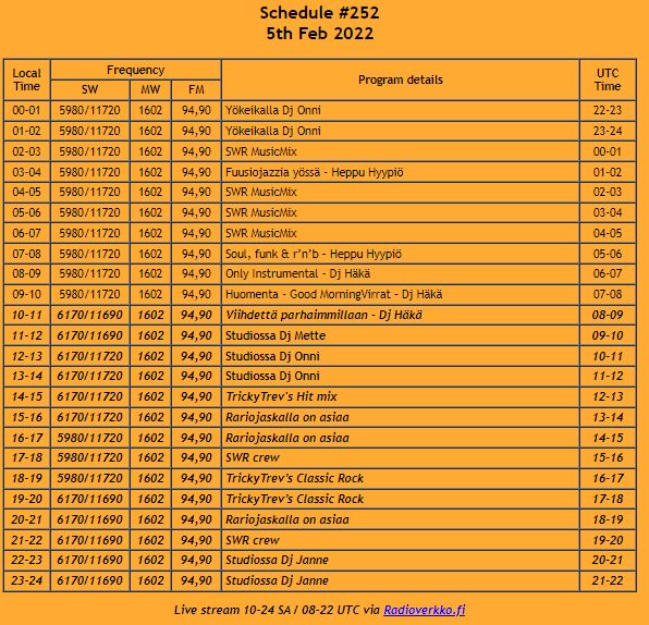 Desde Finlandia , Scandinavian Weekend Radio-Virrat, estará en el aire este fin de semana.