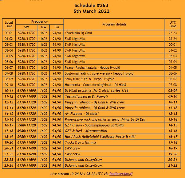 Desde Finlandia , Scandinavian Weekend Radio-Virrat, estará en el aire este fin de semana.
