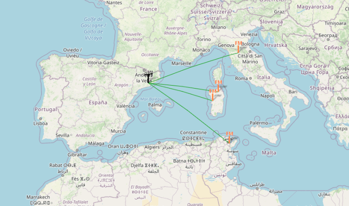 | 19/06/22 | 0910 | 107,300 | I | Radio Maria-Sinnai/Monte Serpeddi | Talk OM | Ita | 34333 |