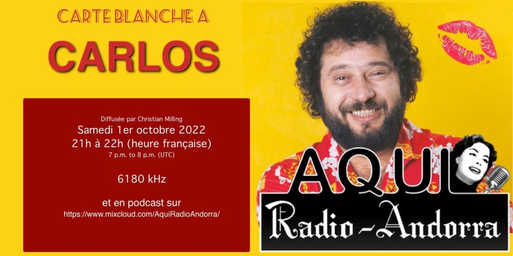 Sábado 1 de octubre de 2022, como cada primer sábado del mes, podrás escuchar un nuevo archivo de sonido de Radio-Andorra (1979) restaurado por nuestro amigo Christian Milling. Esta es una «tarjeta blanca» para Carlos. En la emisión que duró 2 horas, solo se pudo recuperar una hora.