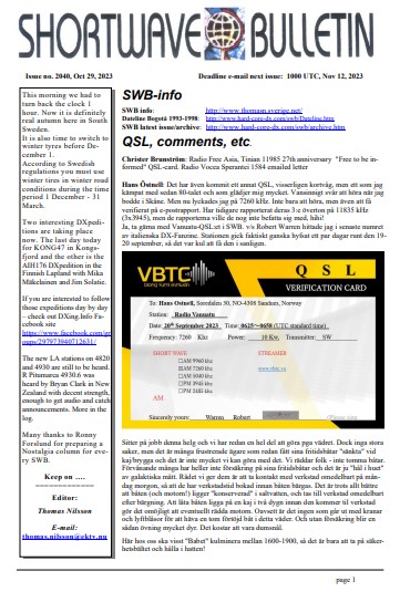 Ya disponible Shortwave Bulletin nº2040 Por elradioescucha el 30/10/2023 Enlace para la descarga:http://www.hard-core-dx.com/swb/archive.htm Anuncios Ultimas Entradas 09/01/2026 Radio Caroline North 10 y 11 de Enero 2026 09/01/2026 Shortwave Radiogram, del 9 al 15 de Enero 2026: programa 432 09/01/2026 Próximas emisiones de las estaciones imaginarias 08/01/2026 Radio Tumbril – Programación Encore Comparte esto: Haz clic para compartir en X (Se abre en una ventana nueva) X Haz clic para compartir en Facebook (Se abre en una ventana nueva) Facebook Haz clic para compartir en Bluesky (Se abre en una ventana nueva) Bluesky Haz clic para compartir en Mastodon (Se abre en una ventana nueva) Mastodon Haz clic para compartir en Pinterest (Se abre en una ventana nueva) Pinterest Haz clic para compartir en WhatsApp (Se abre en una ventana nueva) WhatsApp Haz clic para compartir en Telegram (Se abre en una ventana nueva) Telegram Haz clic para imprimir (Se abre en una ventana nueva) Imprimir Haz clic para enviar un enlace por correo electrónico a un amigo (Se abre en una ventana nueva) Correo electrónico Haz clic para compartir en Pocket (Se abre en una ventana nueva) Pocket Haz clic para compartir en Reddit (Se abre en una ventana nueva) Reddit Me gusta Cargando...‹ En Contacto – Radio Habana CubaNueva Emisión de Ruqui Radio AM – Especial Halloween ›Categorías:PublicaciónEtiquetas:Frecuencias, Onda Corta, Shortwave, Shortwave Bulletin, SWL Artículos relacionados Ya disponible Shortwave Bulletin nº2096 Boletín RUS-DX #1375 Ya Disponible DX Fanzine No. 148 Ya disponible la publicación Selvamar Noticias nº71