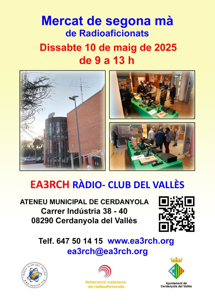 Según informa el RadioClub del Valles EA3-RCH este próximo sabado 10 de Mayo tendra lugar en el ateneo de Cerdanyola del Valles el tradicional mercado de segunda mano mensual.