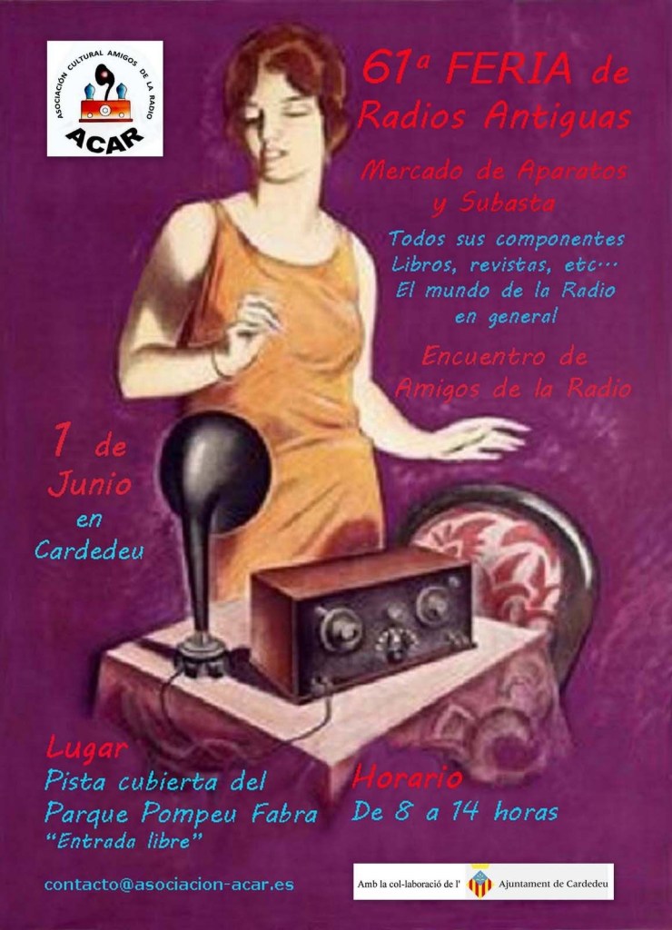 Con Motivo de la 61º Feria de Amigos de la Radio – ACAR , el próximo día 1 de Junio de 2025 se celebrara en el pabellón Pompeu Fabra de Cardedeu (Barcelona) la Feria de Radio Antiguas y audios. Su horario será de 8h. a 14 h.