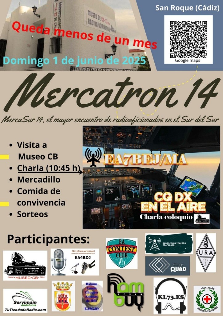 La fecha para el encuentro de electrónica, radio, comunicaciones, informática, música, radioafición y Banda Ciudadana CB27 más importante del sur del Sur de Europa, Mercatron 14, es el domingo 1 de junio de 2025, como siempre, junto al Museo de la CB, en la Alameda de Alfonso XI de San Roque (Cádiz).