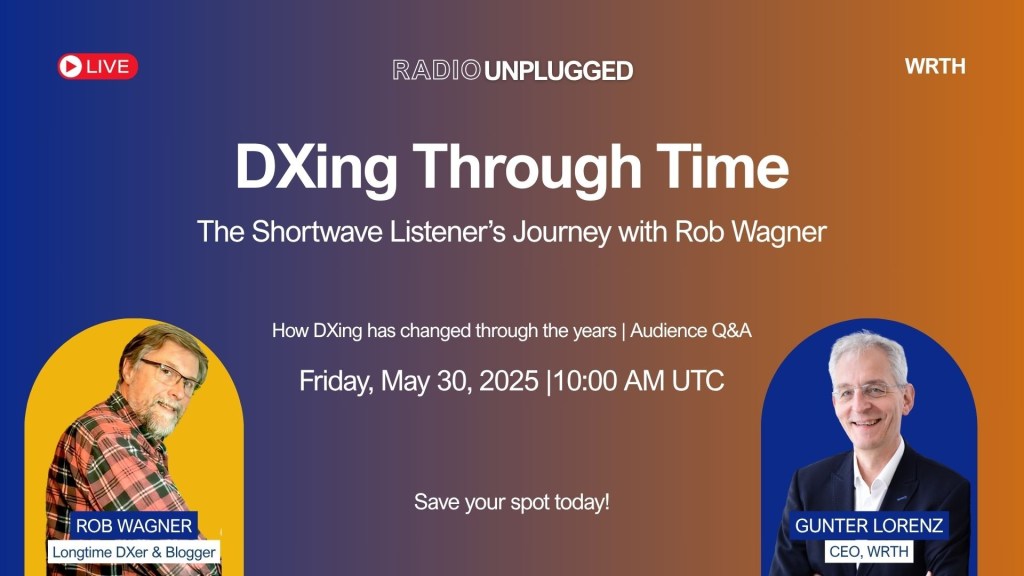 Join us for the next edition of Radio Unplugged, where we welcome longtime DXer and writer Rob Wagner for a live conversation on how shortwave listening has changed—and how to get the most out of it today.