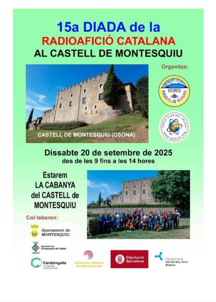 La Diada de Radioaficionats del Castell de Montesquiu, és un punt anual de trobada de la Radioafició Catalana al qual esteu tots convidats. Tant a participar i operar-hi, com a gaudir d’un Dia de Camp amb tota la família.