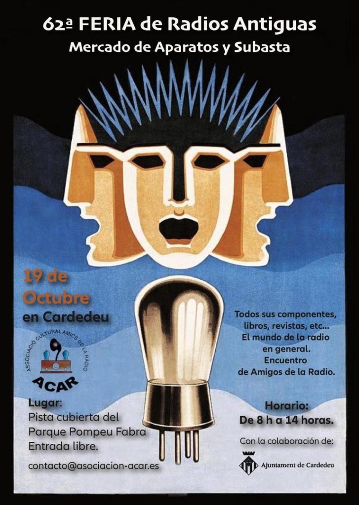 El próximo día 19 de Octubre de 2025 se celebrara en el pabellón Pompeu Fabra de Cardedeu (Barcelona) la 62ª Feria de Radio Antiguas y audios. Su horario será de 8h. a 14 h.