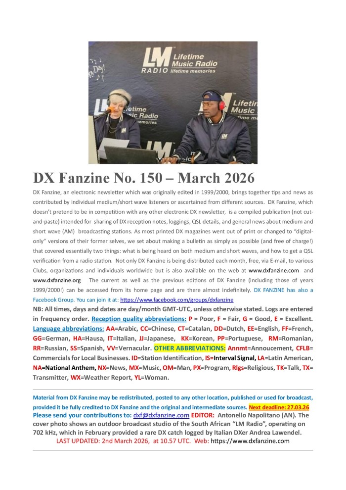 12.00 UTCĀ por los 12060 kHzĀ (VĆa Gavar – Armenia)