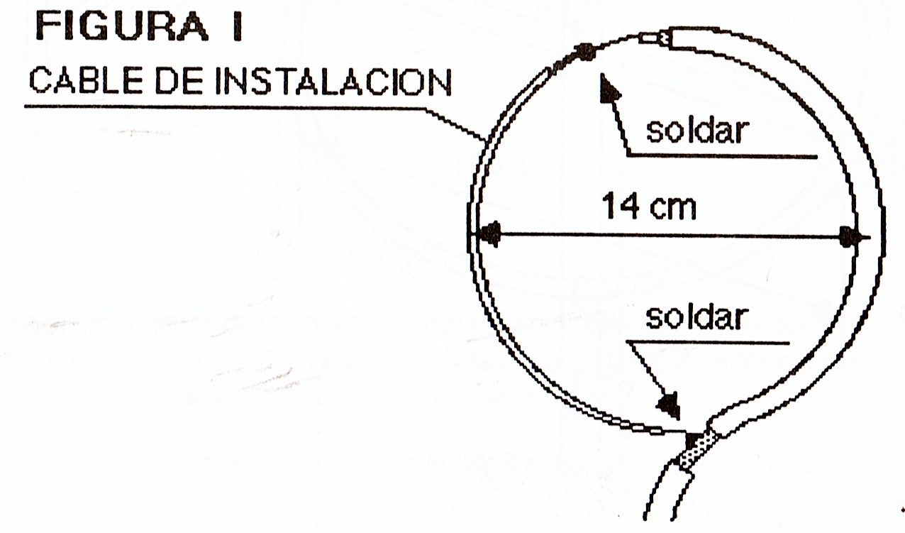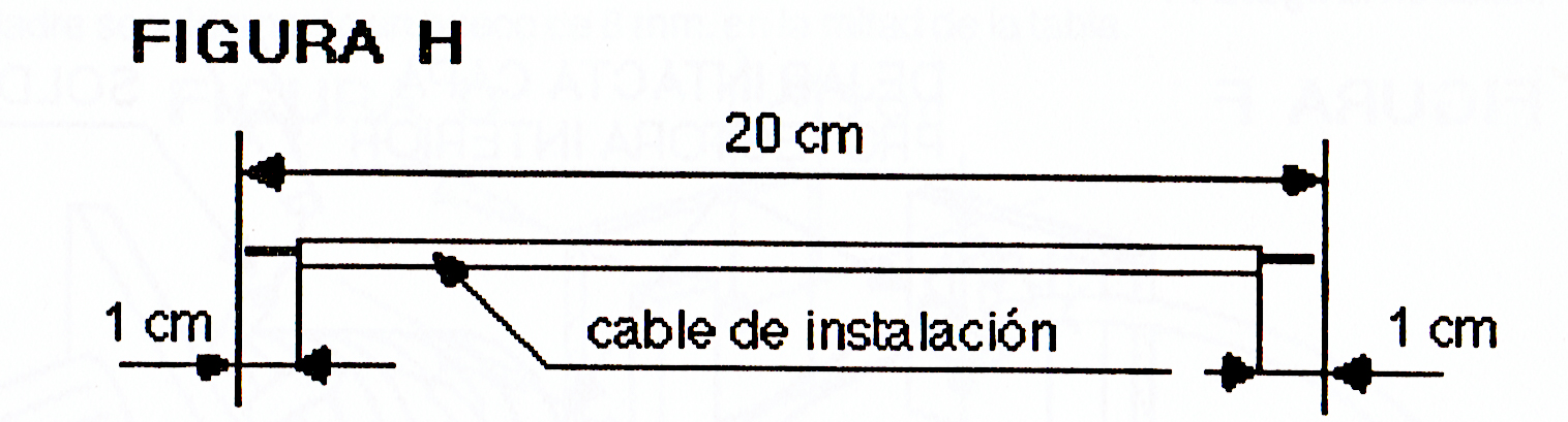 8. Retire en ambos extremos de la tira de cable de instalación de 20 cms., 1 cm. de la capa aislante. (Vea figura H)
