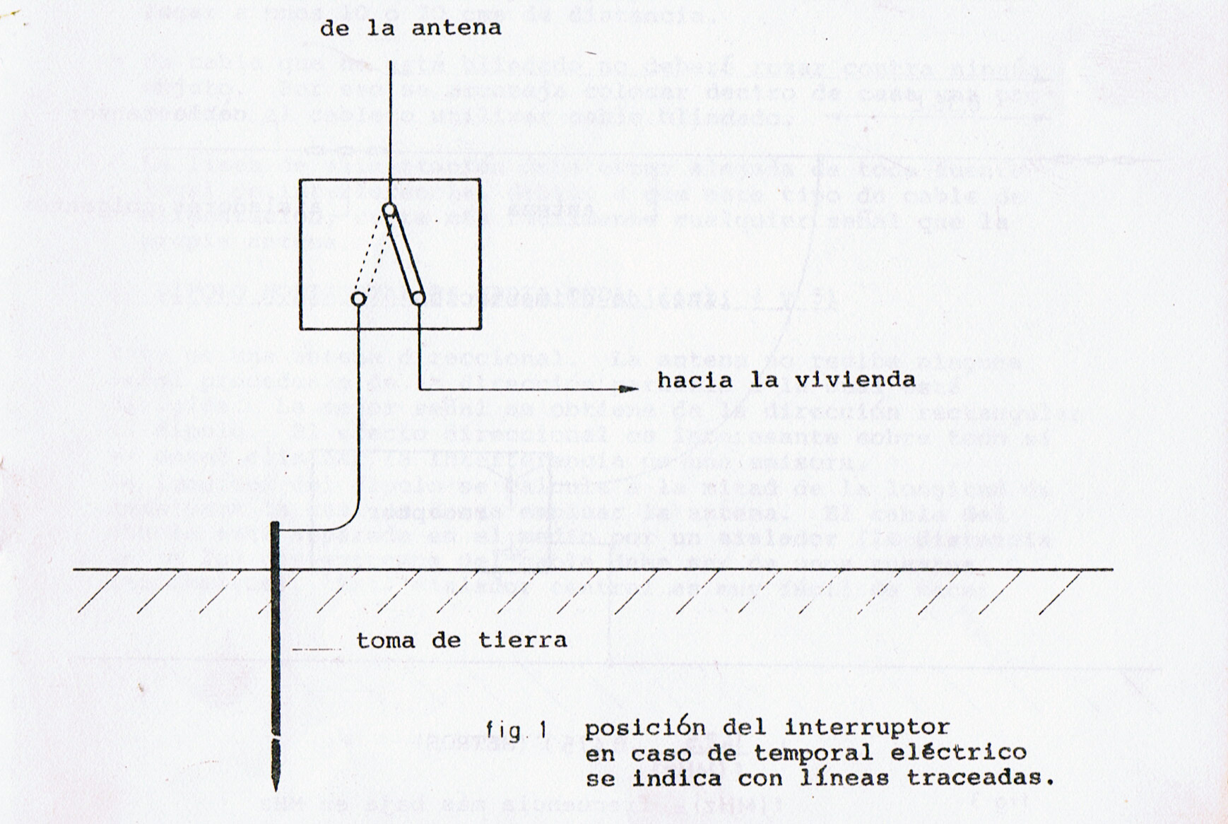 Esto se indica en la figura 1. En caso de temporal eléctrico se debe colocar el interruptor en la posición que se indica en la figura 1 en lineas troceadas. La protección contra rayos sin interruptor se puede lograr también empleando un patrón de gas neón (que se pueden adquirir en las tiendas donde venden accesorios para antenas).