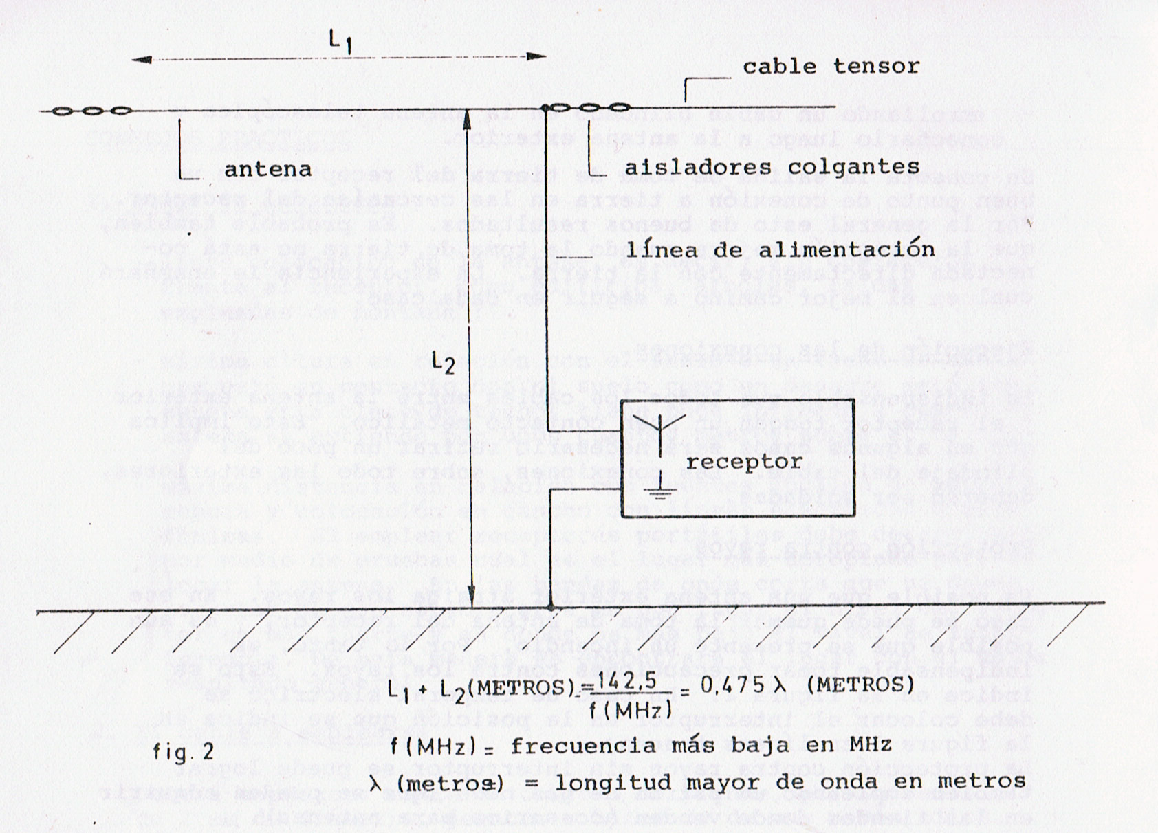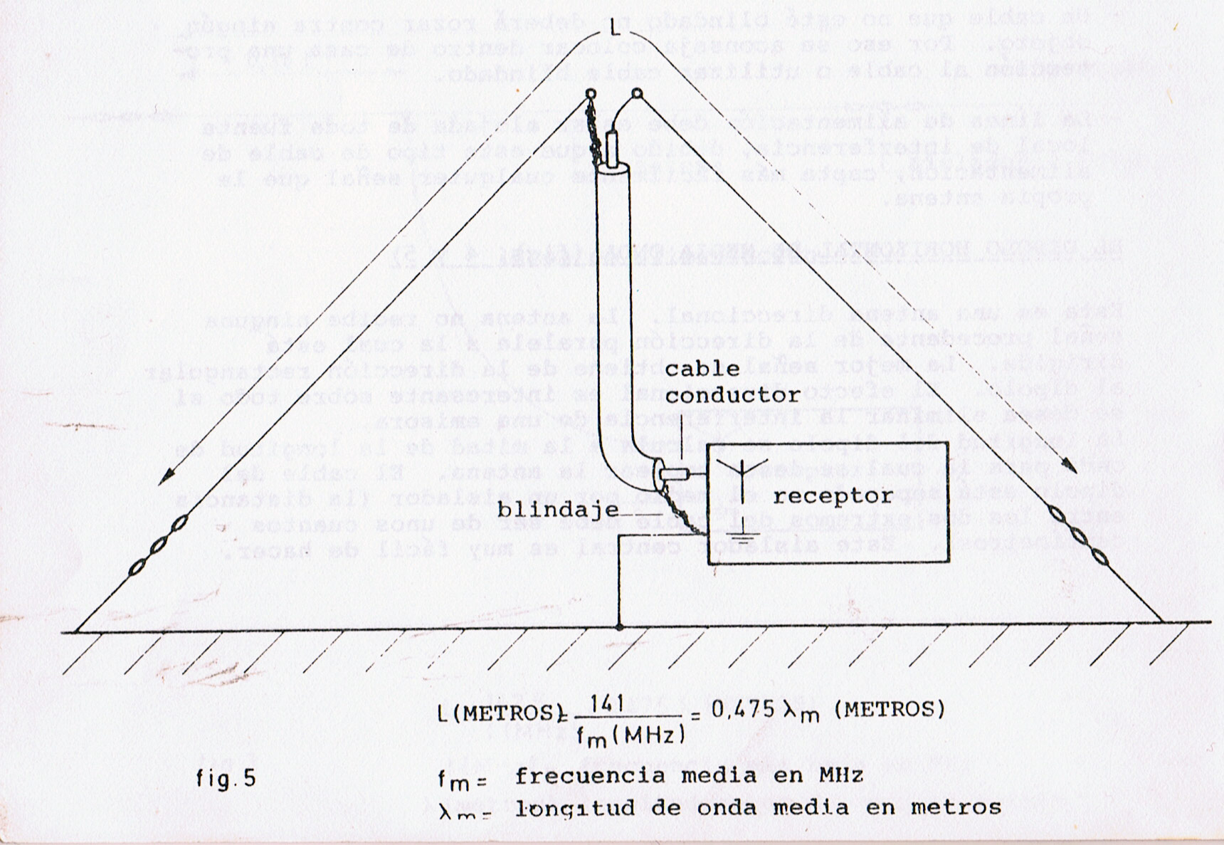LA ANTENA V-INVERTIDA (fig. 5) Esta antena no es direccional. Sólo requiere un soporte. Los puntos anotados en la antena anterior también rigen para ésta. La línea de alimentación para las dos antenas puede estar compuesta por :