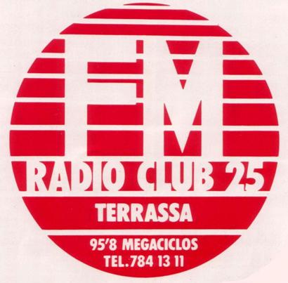 Desde esta pagina quiero rendir mi pequeño homenaje a la emisora Radio Club 25 – Radio Terrassa que fue una cadena de radio musical que tenía su sede en Terrassa (Barcelona) desde donde emitió desde 1979 hasta 2007. Aquí publicare todo aquel material del que dispongo desde audios, adhesivos, etc..